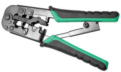 Итак, перед вами кабель, коннекторы и обжимной инструмент. Приступим к операции обжима витой пары.